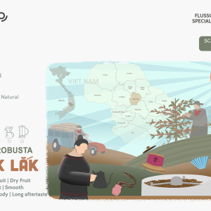 Cà phê Buôn Hồ Đắk Lắk mang phong cách đậm đà đặc trưng của Tây Nguyên. Vùng nguyên liệu nằm ở độ cao 700–750m, tạo điều kiện thuận lợi cho cây cà phê phát triển ổn định.